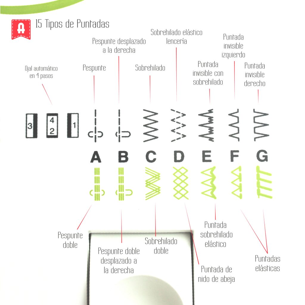 Además entre sus 15 puntadas incluye varias decorativas que te permitirán dar un toque creativo a tus prendas.